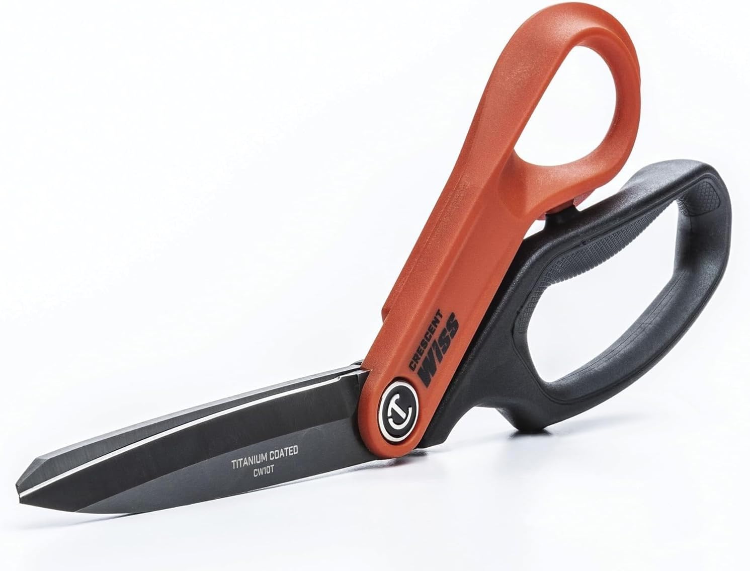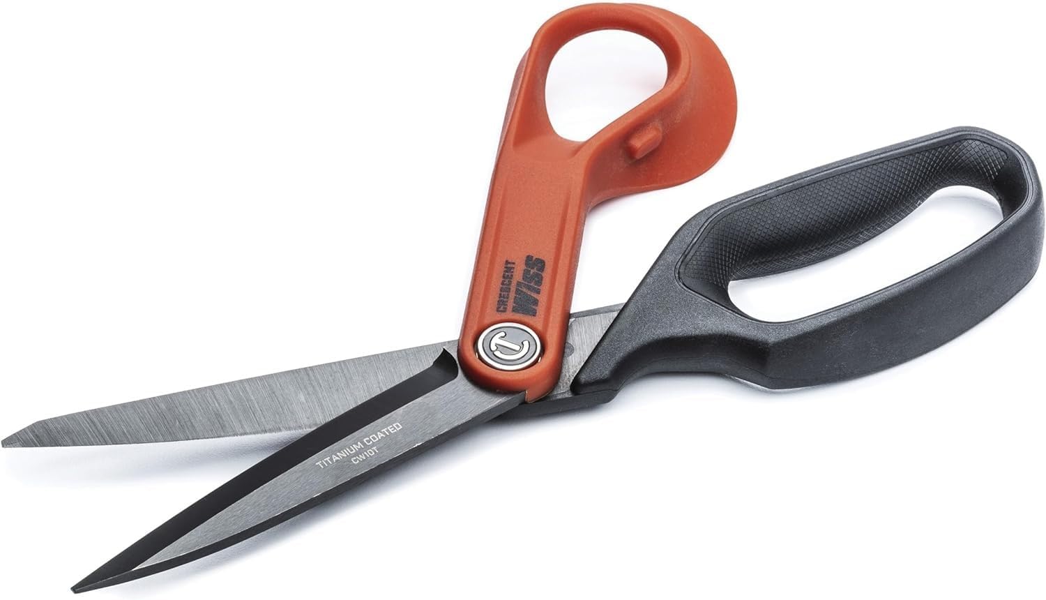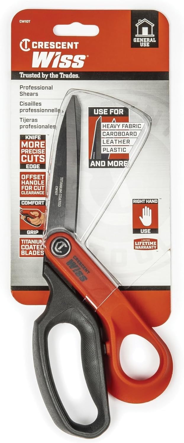 Crescent Wiss 10"e; Titanium Coated Offset Tradesman Shears – Industrial Heavy Duty Utility Shears Scissors for Cutting Leather, Wire, Cardboard – Right-Hand – CW10T
