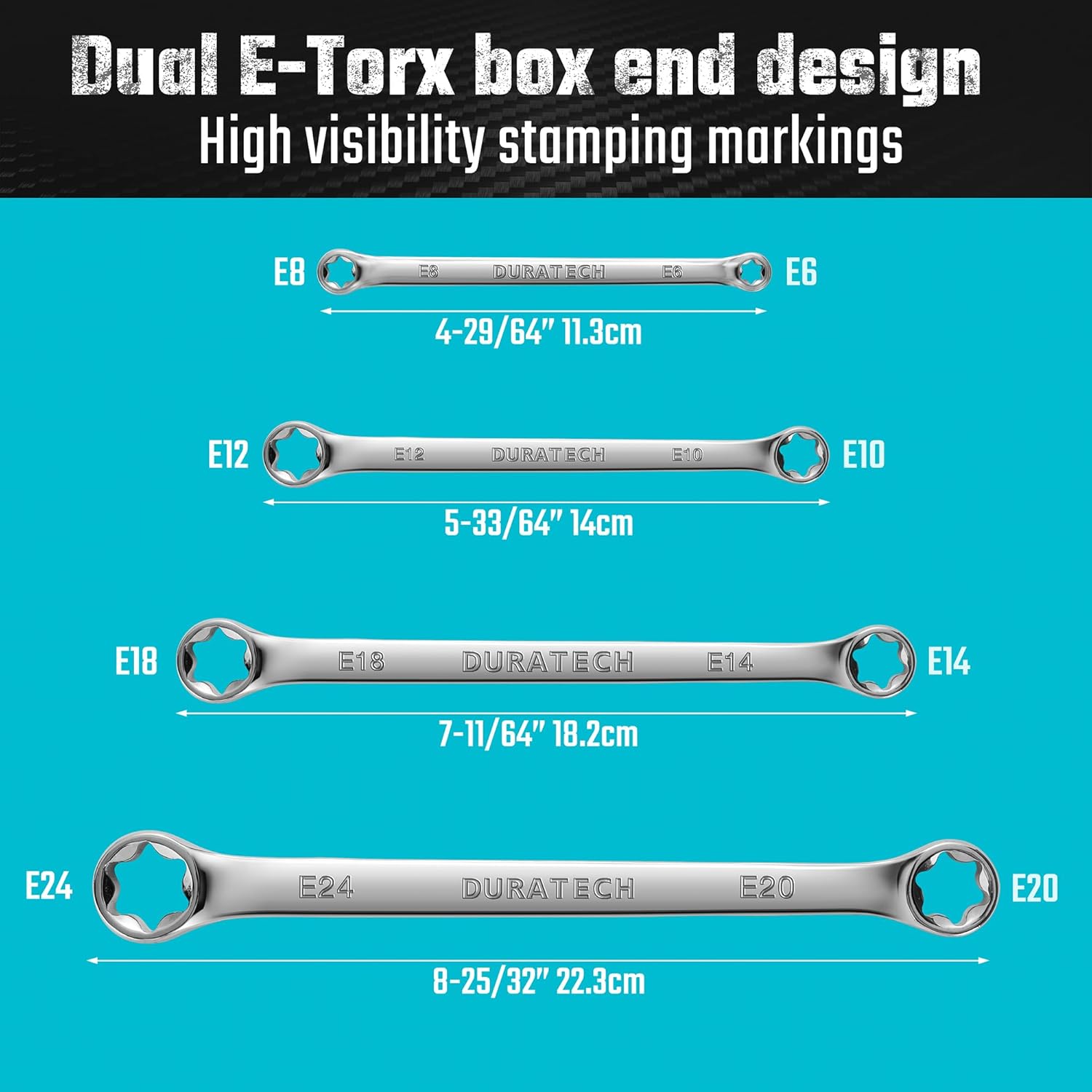 DURATECH 4-Piece E-Torx Wrench Set, Double Box End Wrench Set, CR-V Steel,