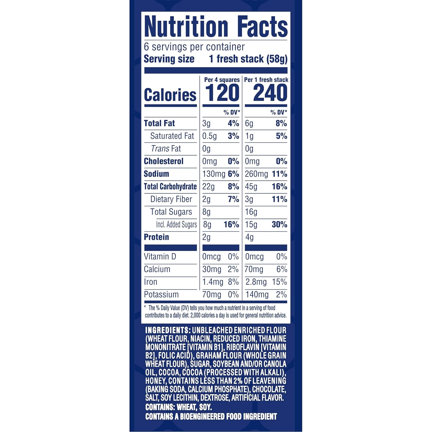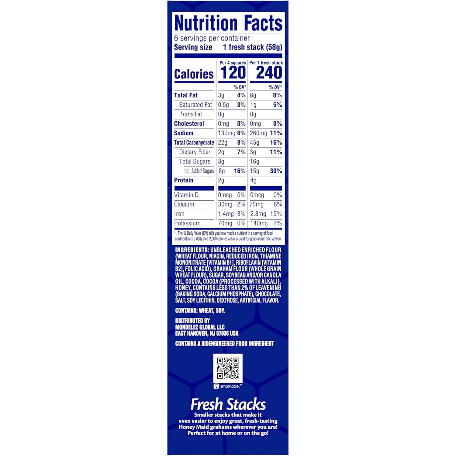 - Six 12.2 oz boxes of HONEY MAID Chocolate Fresh Stacks Grahams, Chocolate Graham Crackers, 36 total fresh stacks