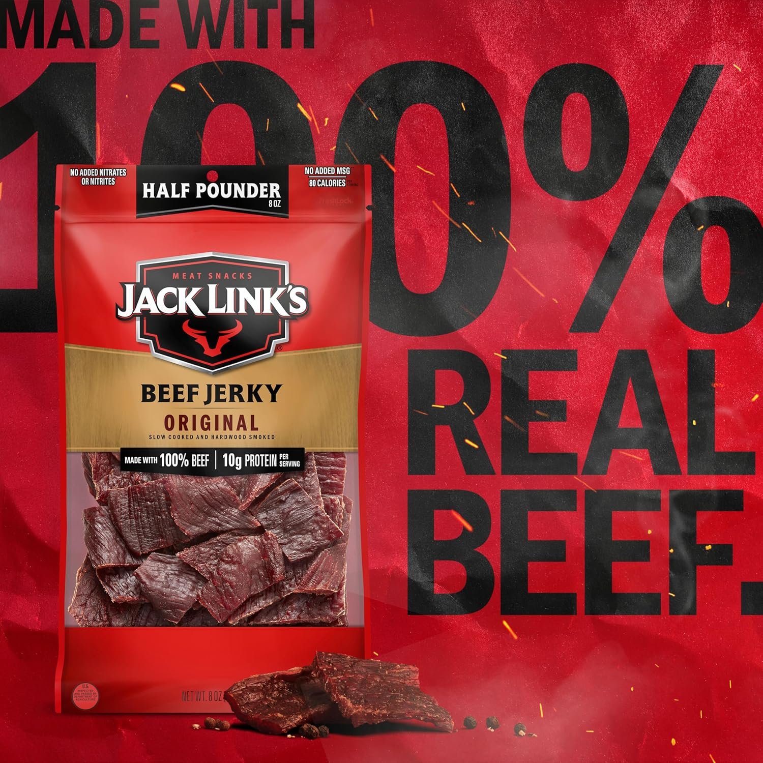 - MADE WITH 100% BEEF: Our Jack Link’s Original Beef Jerky is made of lean cuts of 100% beef. The taste is so great that it makes a great jerky gift for men or women alike! Kids and teens can stay fueled up at school too with great tasting Jack Link’s