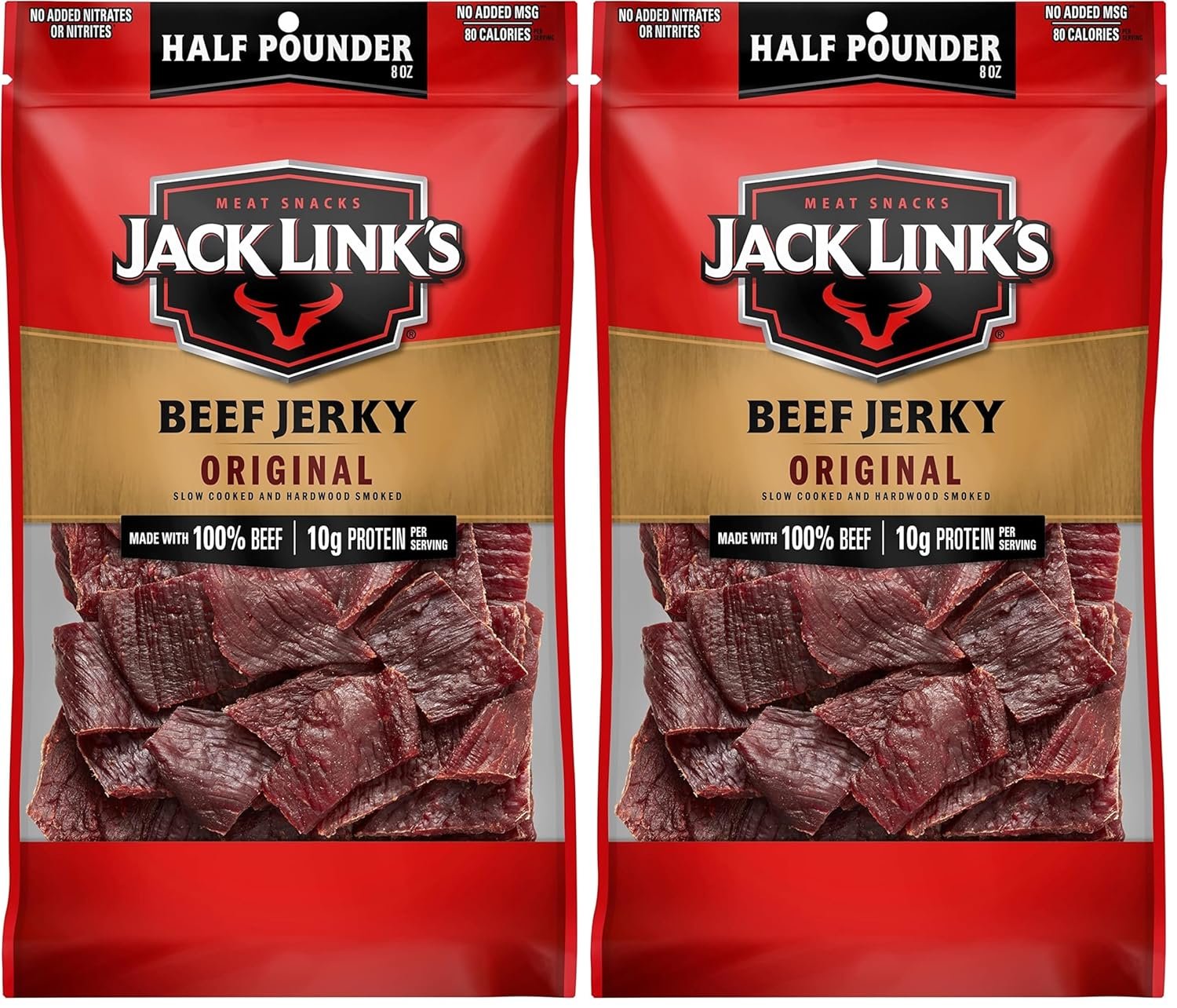 - CONTAINS 10g OF PROTEIN: Protein is an essential part of a balanced diet and Jack Link’s Original Beef Jerky is a delicious way to get more. With 10g of protein and 80 calories per serving, it’s a perfect protein snack for hunting season