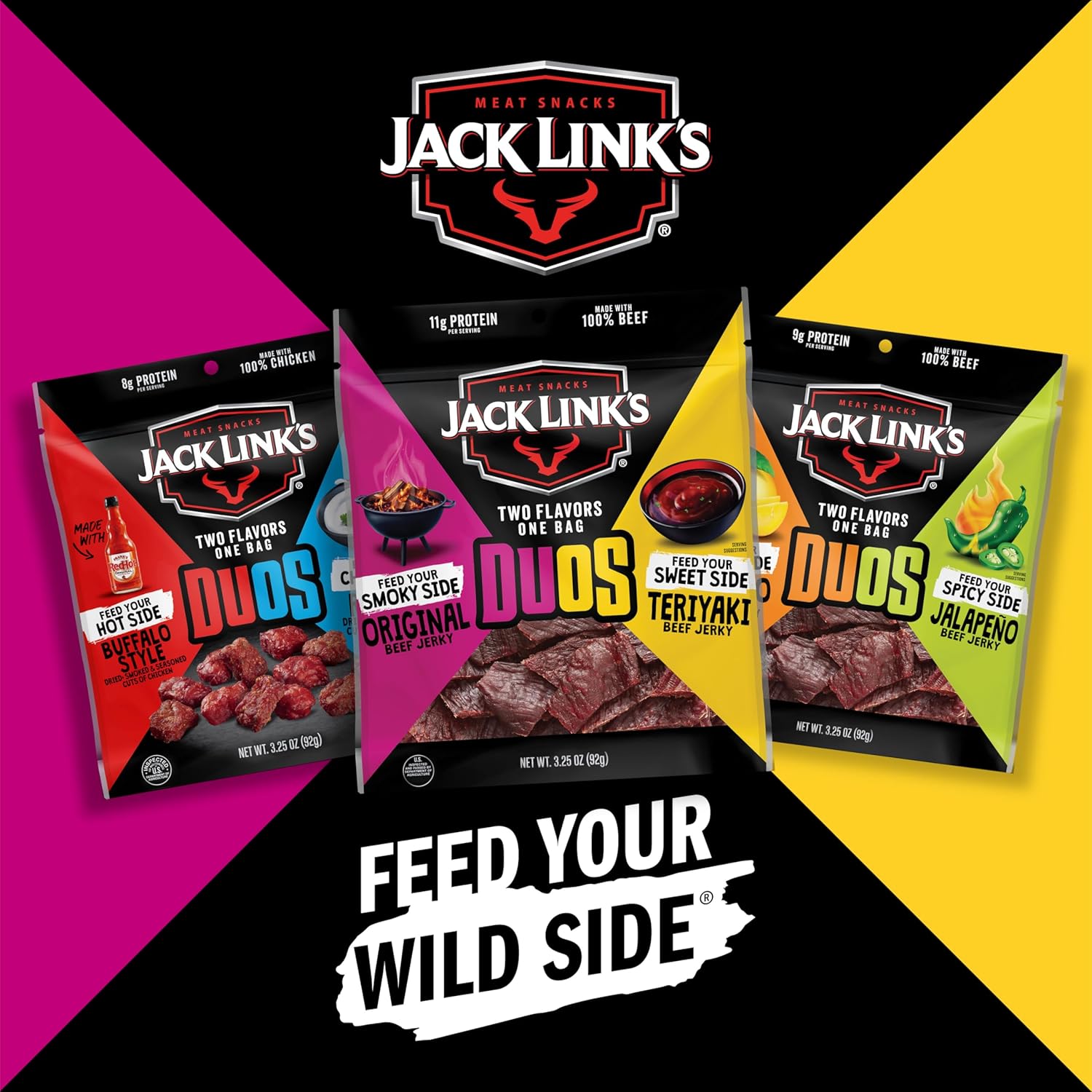 - PROTEIN PACKED MEAT SNACKING: Protein is an essential part of a balanced diet and Jack Link’s DUOs are a great way to get more. With 11g of protein per serving, powering through your day with a tasty snack is easy. Any adventure is possible with DUOs