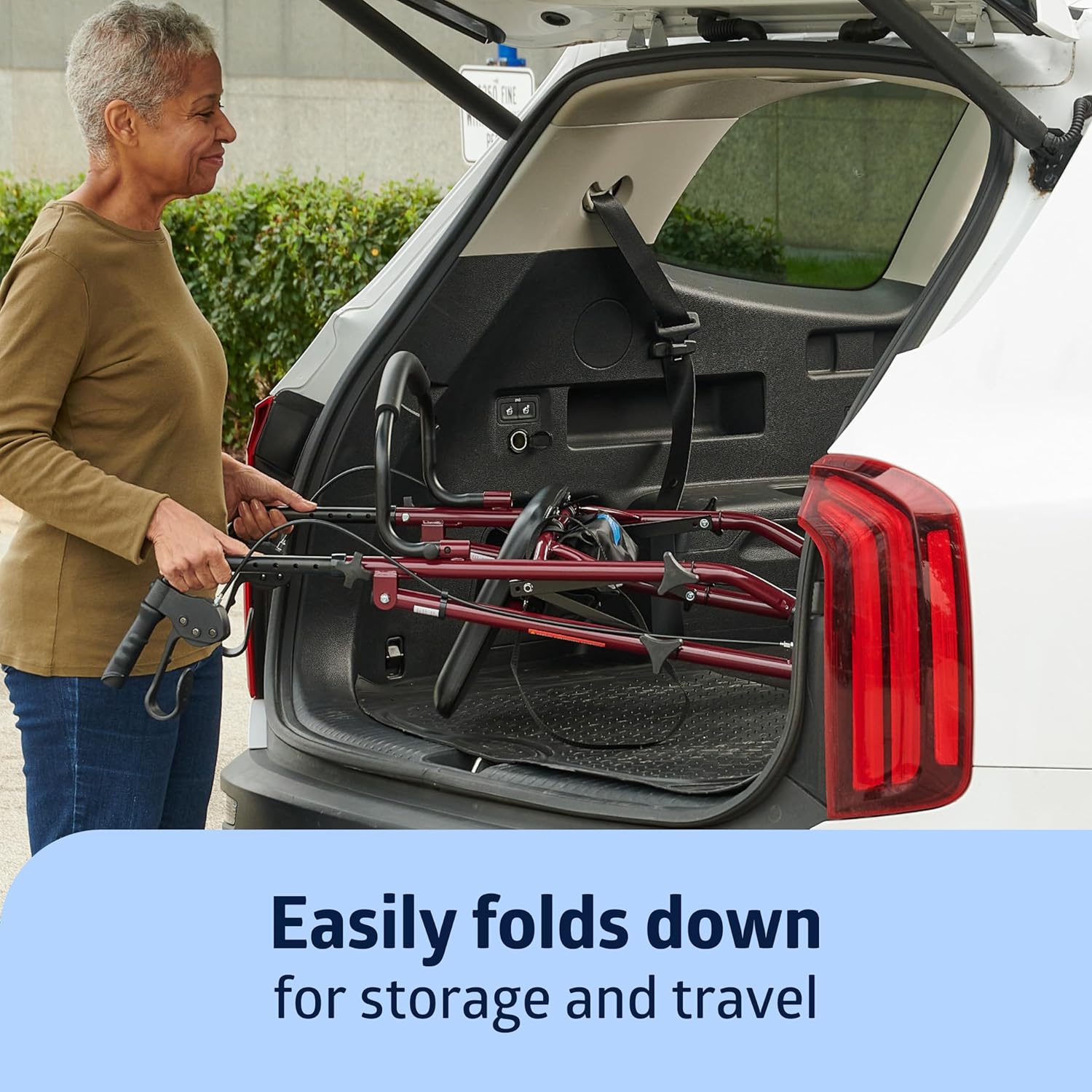 Medline Steel Rollator Walker with Seat, Burgundy, 350 lb. Weight Capacity, 6