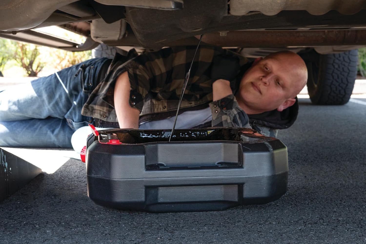 - TWO-IN-ONE: This Performance Tool W4077 16-Quart Oil Drain Container serves two functions – it catches draining oil and also stows it securely away for easy transport