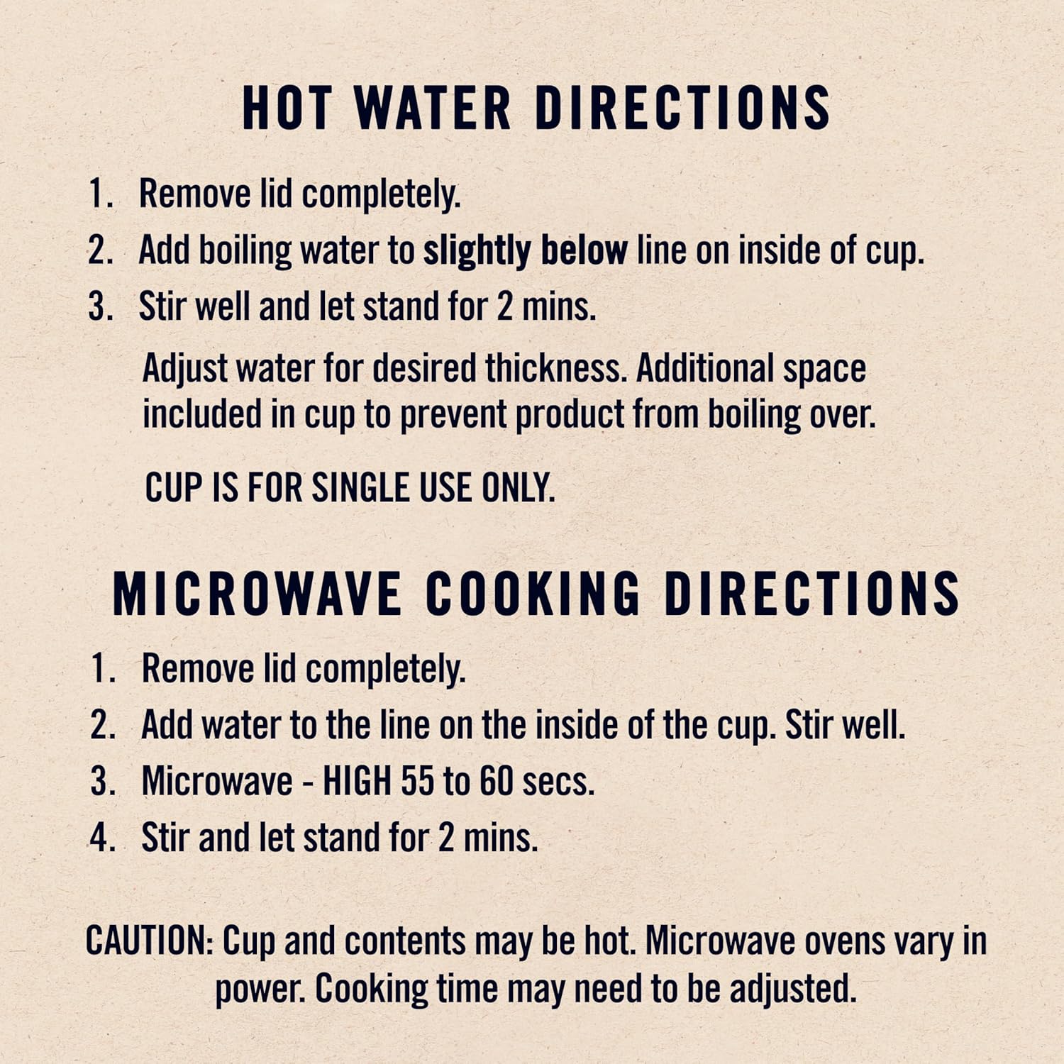 - Cooks in 45-50 seconds in the microwave, just add water or milk
