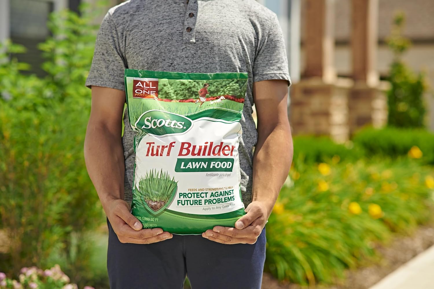 Scotts Turf Builder Lawn Food feeds and strengthens grass to help protect against future problems