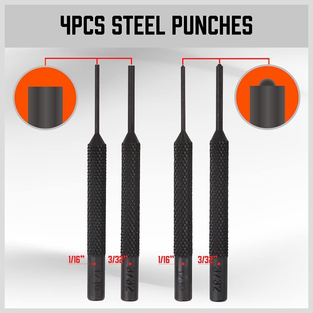• STARTER PUNCHES – 4 precision sizes 1/16″, 5/64″, 3/32″, 1/8″ to handle a wide range of alignment and assembly tasks with ease