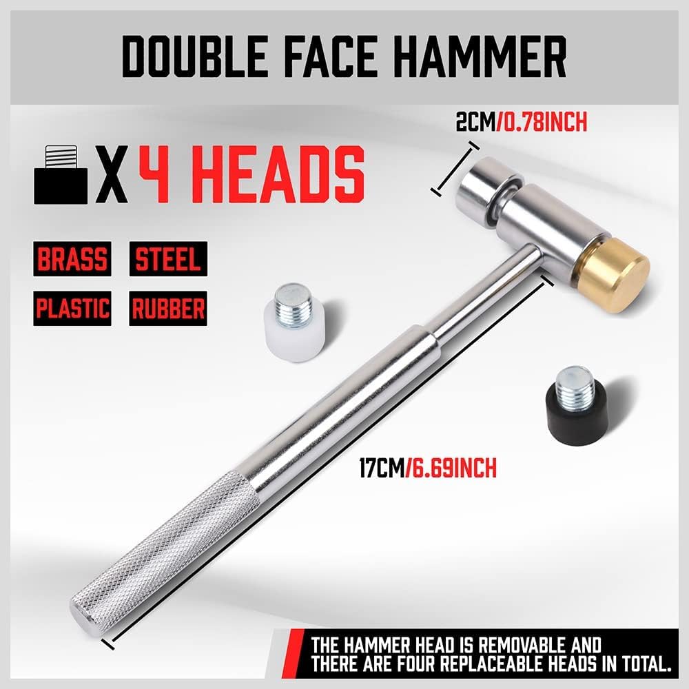 • MULTI-HEAD HAMMER – Chrome plated steel hammer comes with brass, nylon, stainless steel, and rubber heads to provide strong yet non-marring contact