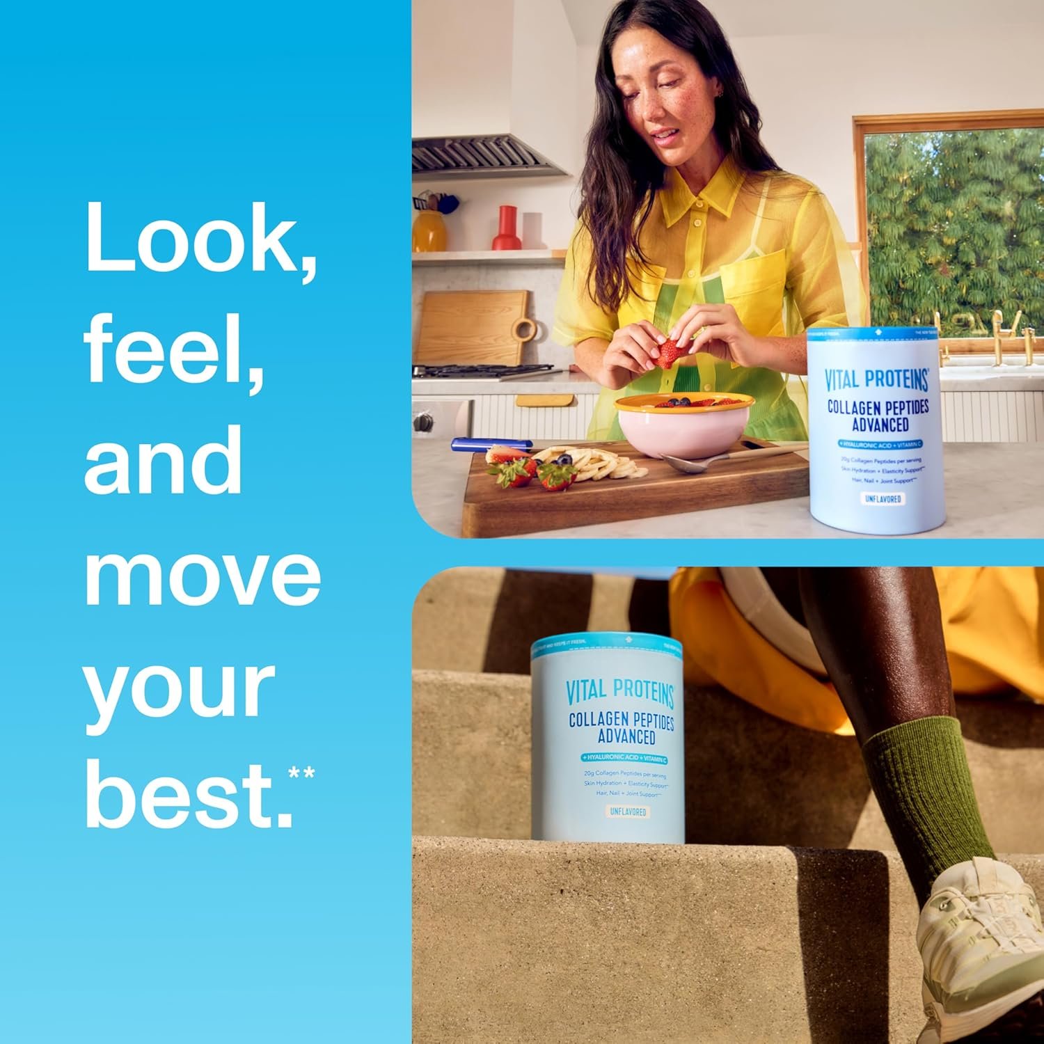 Vital Proteins Collagen Peptides Powder Advanced with Hyaluronic Acid & Vitamin C – 20oz Collagen Protein, Unflavored, 27 Servings